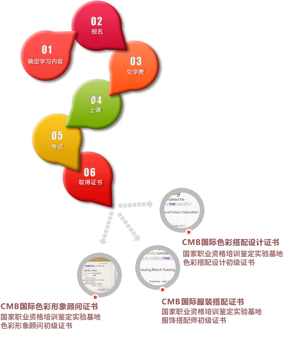 注:祺馨頒發(fā)的CMB證書(shū),在全球33個(gè)國(guó)家和地區(qū)均受認(rèn)可,具體有哪些國(guó)家,請(qǐng)查閱CMB英國(guó)總部官網(wǎng): www.colourmebeautiful.co.uk;國(guó)家職業(yè)資格培訓(xùn)鑒定實(shí)驗(yàn)基地證書(shū)官網(wǎng)查詢(xún): http://nptb.cnthr.com。