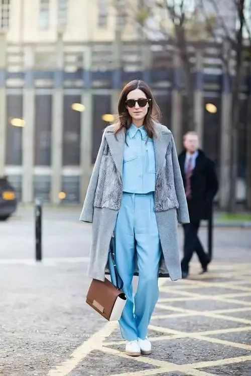 最經(jīng)典的灰色配色組合,當(dāng)屬灰配粉,很常見,穿出溫柔理性的味道且極富女人味兒。