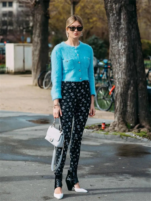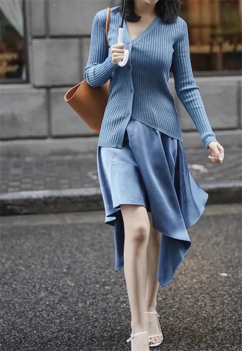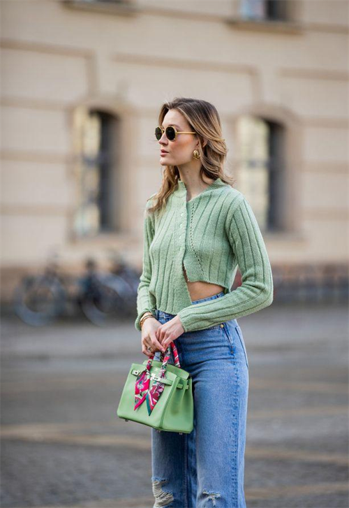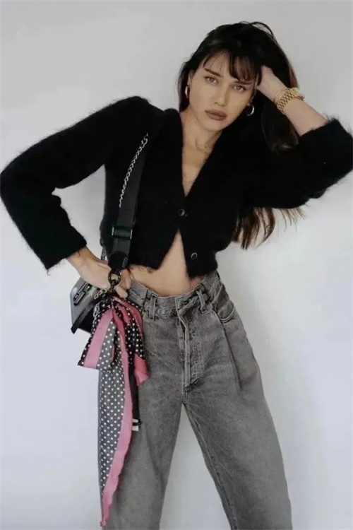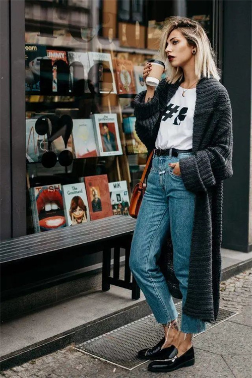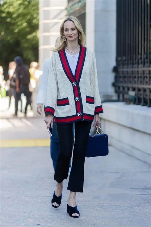 適合搭配直筒褲、喇叭褲、A字裙等,如果開衫的款式“平平無奇”,那么就需要其它有個(gè)性的單品來做搭配才有意思。