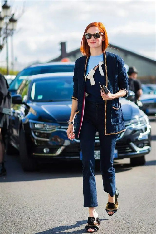 除了可以搭配連體裙,也可以是半身裙,要回避超短裙、緊身裙,還很適合搭配西褲、直筒褲。和針織內(nèi)搭成套搭配也很符合古典風(fēng)格端莊沉穩(wěn)的氣質(zhì)。