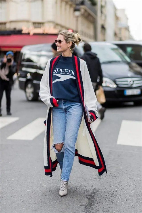 一般來說,少年風(fēng)格適合短小精干的打扮,針織開衫也以短款為佳,直線版型,直線剪裁,以搭配褲裝為主。內(nèi)搭則很適合T恤、襯衫,這樣的搭配也很符合當(dāng)下流行。