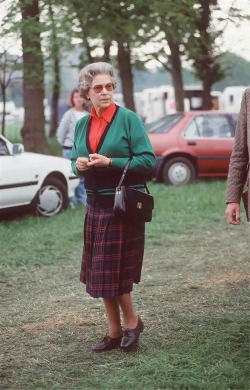 合體的直線剪裁,不能太短或太長,在胯部這個(gè)范圍最得體。針織開衫能帶來溫和、親切的感覺,拉進(jìn)距離感,所以在一些不那么嚴(yán)肅的正式場合,曾經(jīng)的英女王也會(huì)穿它。