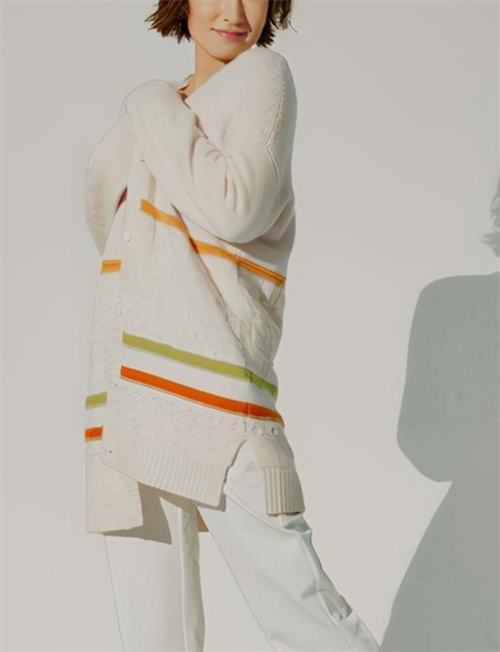 和曲線型人整體強(qiáng)調(diào)精細(xì)柔美、曲線剪裁的傾向不同,直線型人在選擇針織開衫的時(shí)候比較講究版型、剪裁、邊緣線、圖案等都呈相對(duì)直線條的狀態(tài)。