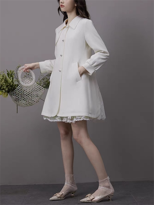 早春的薄大衣中,細(xì)呢、軟質(zhì)毛料、蘇格蘭呢、真絲等這類材質(zhì)的中等長(zhǎng)度外套,少女風(fēng)格比較容易買到且穿得好看。