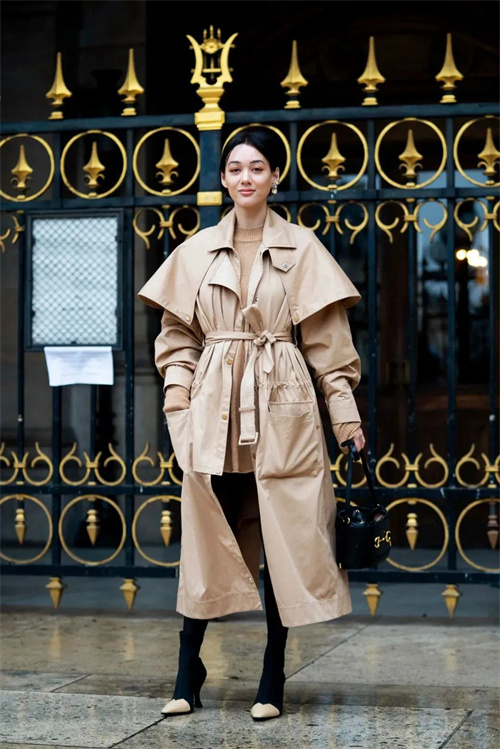 收腰很重要,大多數(shù)時(shí)候系上扣子要比敞開穿效果好(但也不是絕對(duì)),你的風(fēng)衣最好有明顯的曲線腰身設(shè)計(jì),或者干脆就是系上腰帶,不會(huì)顯得太直硬和隨意。