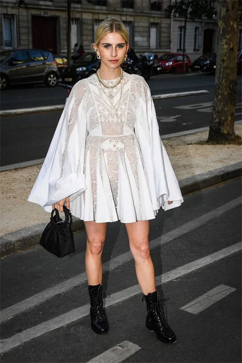 選擇鞋子的時候也是這樣的,所以小黑鞋不是萬能搭配。當用它來搭配淺色衣服,不僅色調不那么協(xié)調,還會使視覺下移,腿看起來也更短了。