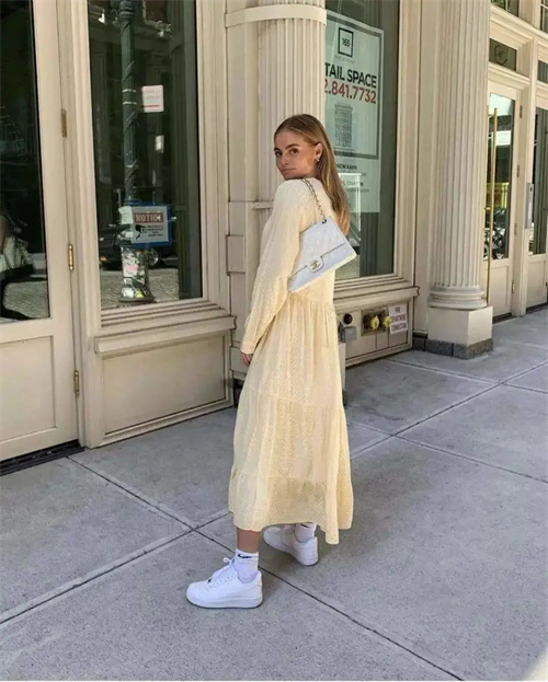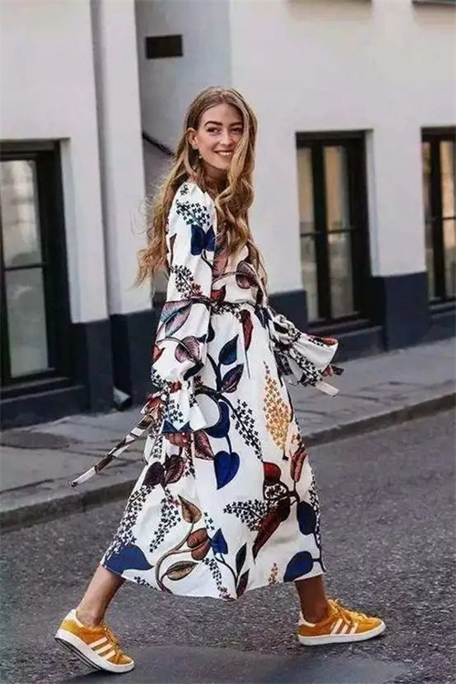 自然風(fēng)格的連衣裙幾乎都可以搭配運動鞋