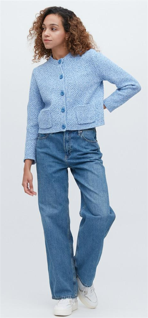 低飽和度的黃配藍(lán),呈現(xiàn)出溫柔的淺淡柔和,淺色型人、柔色型人都很適合,很雅致。